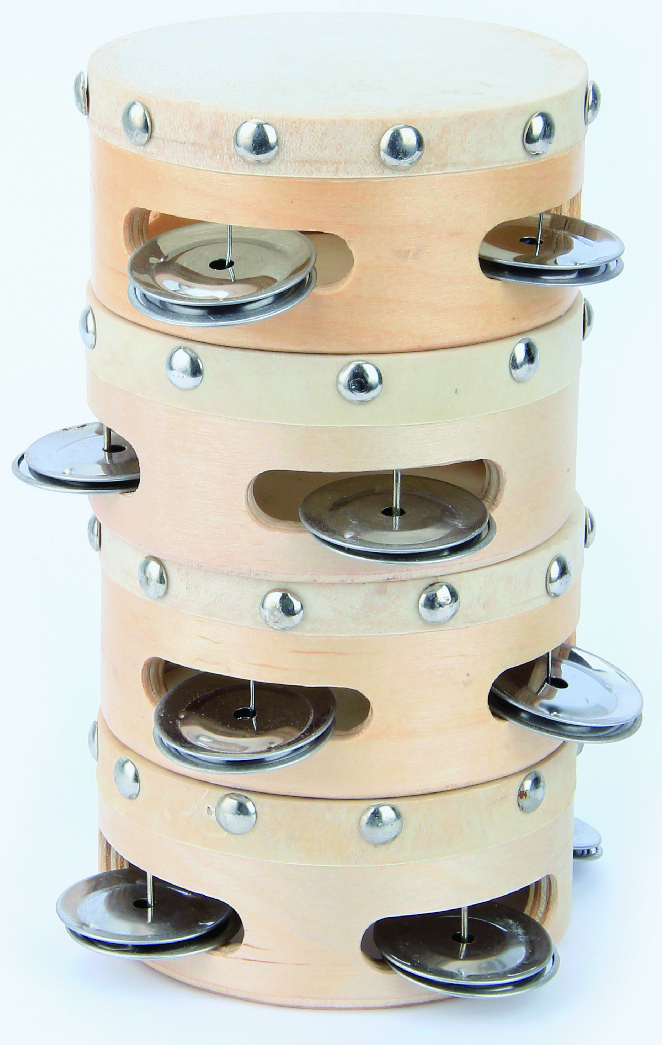 材质:木质圈、不锈钢金属镲片、羊皮鼓面