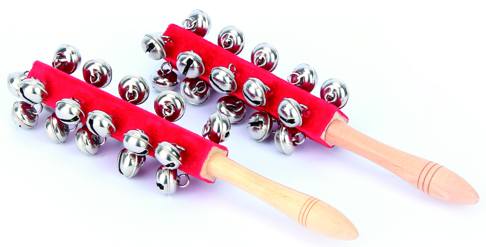 打击乐器--绒布铃21铃 材质:木制、红绒布、铃铛 使用方法:手持木把摇晃发声